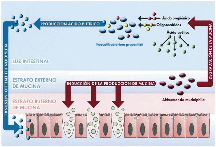 La microbiota muconutritiva desempeña un papel fundamental en el mantenimiento de la integridad de la capa de mucus que tapiza la mucosa intestinal, así como de la propia capa mucosa.