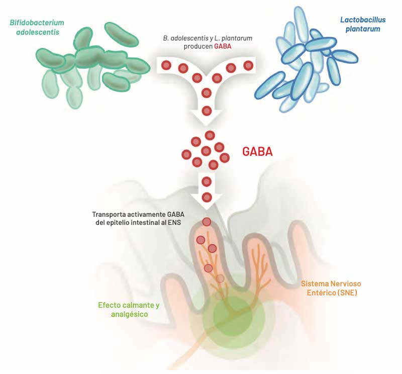 Así, la microbiota neuroactiva es un modulador importante del eje intestino-cerebro y puede transmitir aspectos promotores de la salud a través del GABA producido en el intestino.