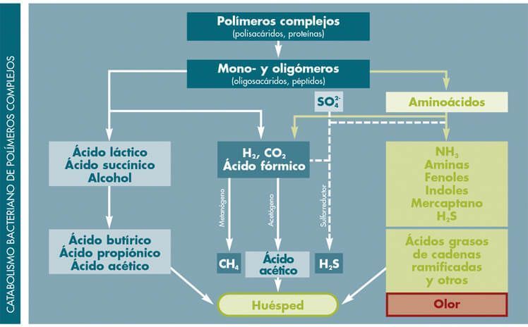 La sobrecarga de proteínas en la dieta, unida a desórdenes de la microbiota protectora y cambios en el pH metabólico, favorecen el crecimiento de bacterias proteolíticas.